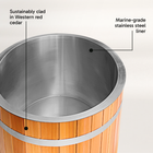 Forge is engineered with premium materials for durability, performance, and effortless use. Its 1.5 mm thick 316 stainless steel liner ensures strength and resilience, while warm red cedar surfaces add natural detail. A brown PU cover treated with UV oil protects the system for outdoor use, and a small step allows safe, practical entry.